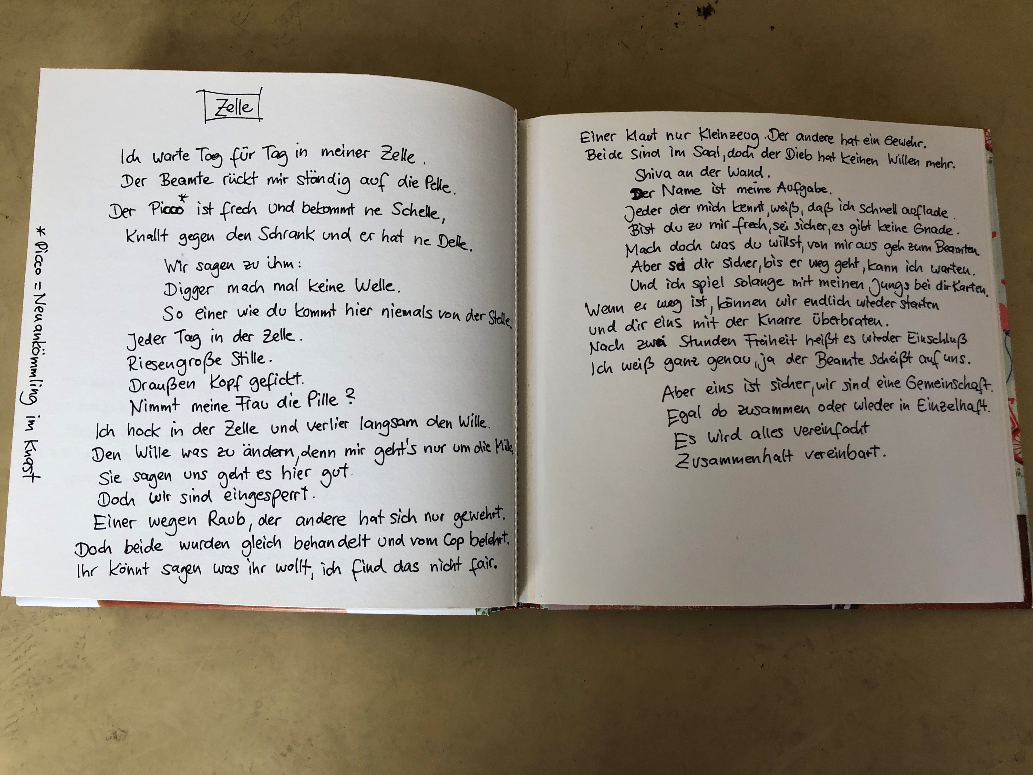 Diesen und weiteren Fragen ist das Projektteam mit Inhaftierten über kreative Schreib- und Gestaltungswerkstätten nachgegangen. Entstanden sind künstlerische Arbeiten, die seltene Einblicke in das Leben hinter Gittern geben.