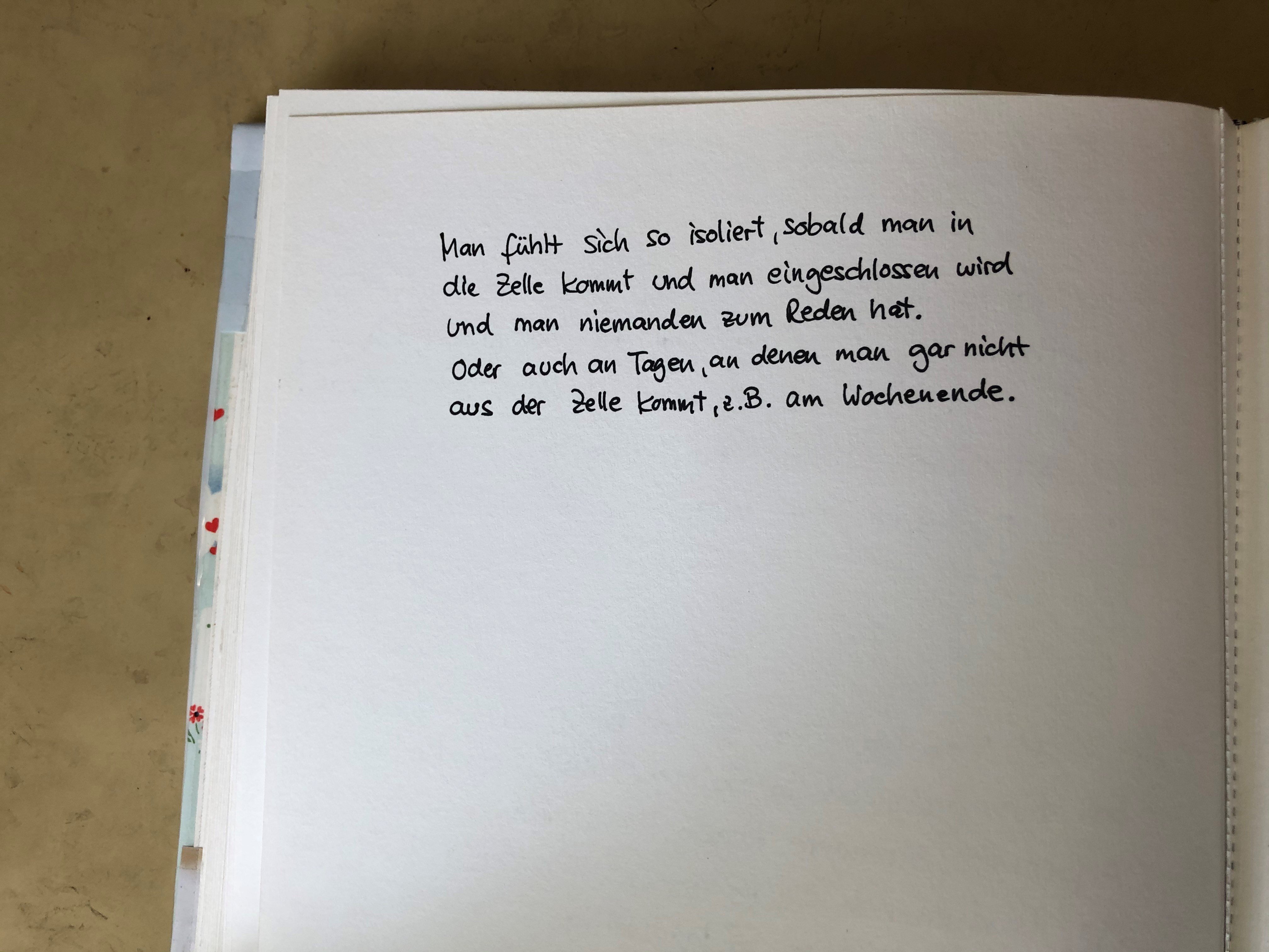 „Ich bete, dass wir etwas lernen. Dass, wenn es endlich vorbei ist, jeder weiß, was wirklich wichtig und wertvoll ist. Der wahre Wert von Freiheit: Die Bedeutung von Familie und Freunden.“ (Worte einer Inhaftierten)